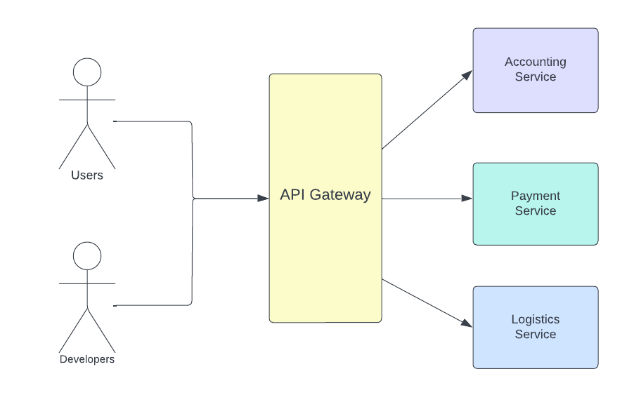 }You can also choose to develop your own API gateway with a framework like Apache Camel. It supports synchronous or asynchronous integration of software components and has various features such as data aggregation and filtering.