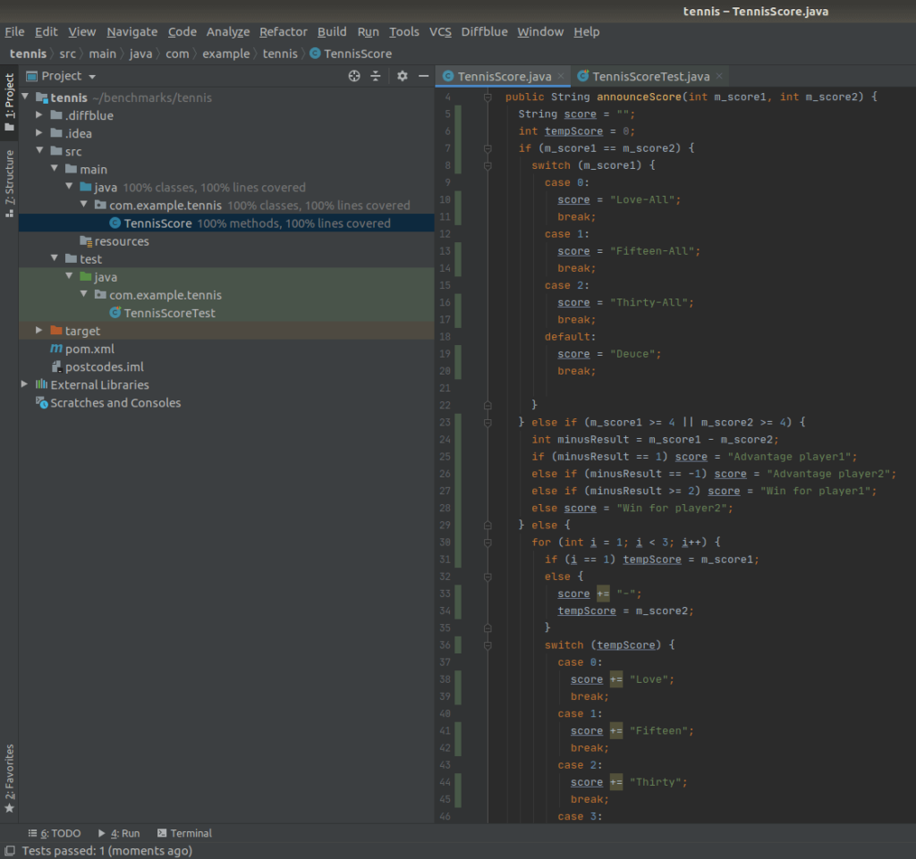 This surprise aside (how has this bug gone unnoticed for so long?!), observe that Diffblue Cover has actually covered every possible case for tennis scores: